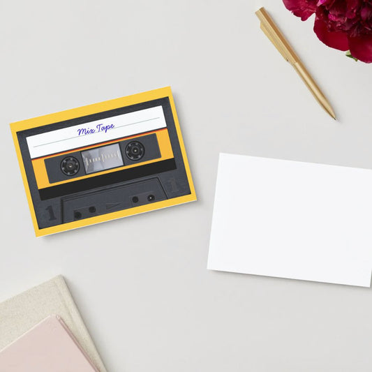 A perfect throwback for anyone who ever pressed record at just the right moment, this 5"×7" original greeting card from Retro Sweet features an illustration of a vintage cassette labeled “Mix Tape.” The bold retro design captures the charm of hand‑written playlists, late‑night recordings, and the art of...